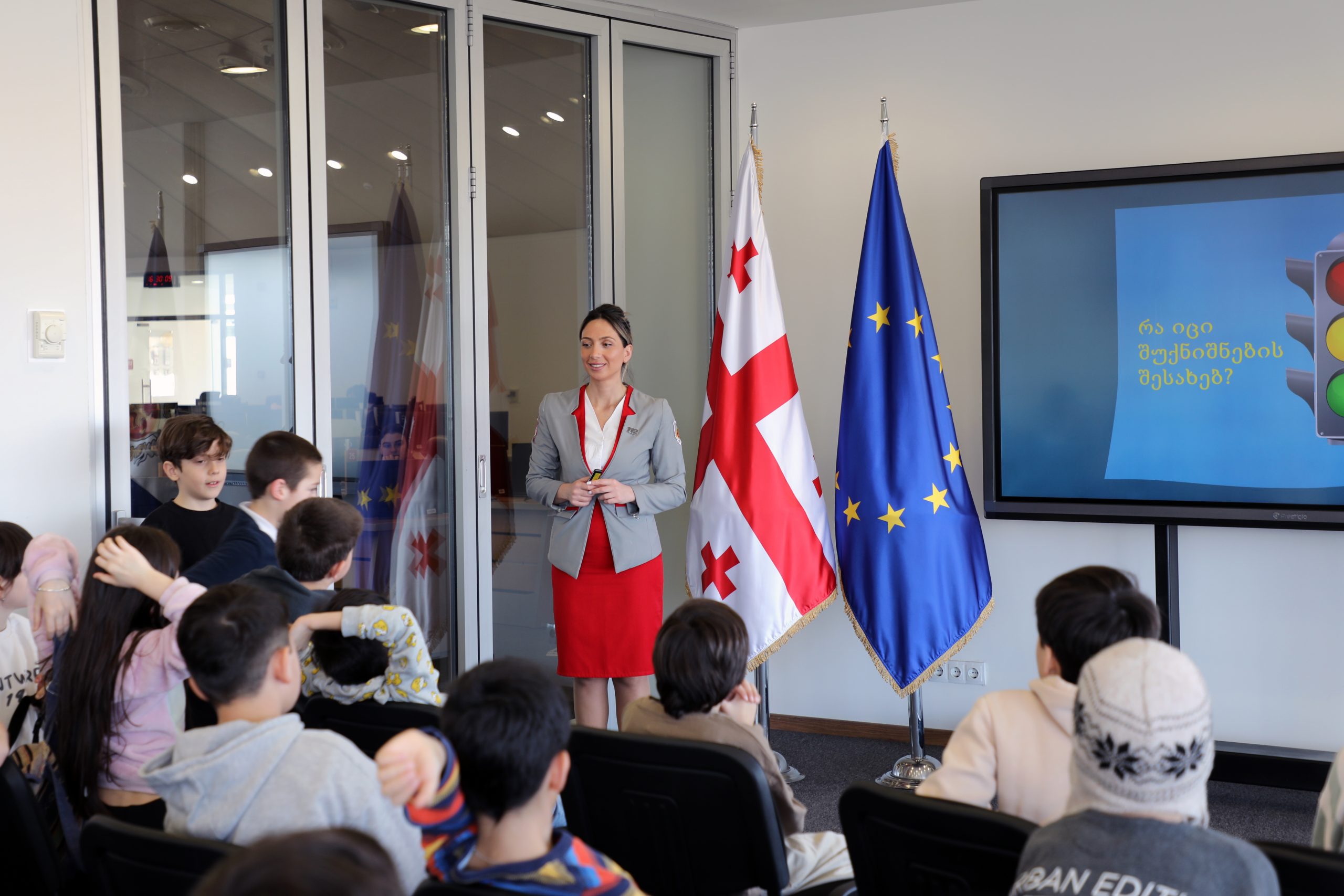 მოსწავლეებმა ასევე, მოისმინეს არამიზნობრივი ზარის განხორციელების საფრთხეები და სანქციები, რომლებიც ცრუ ზარის განხორციელების შემთხვევაშია გათვალისწინებული.